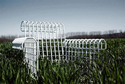 Le vecchie sedie da giardino in ferro battuto, rinnovate e destinate ad un uso trasversale per rafforzare la funzione di "contatto" tra uomo e natura.