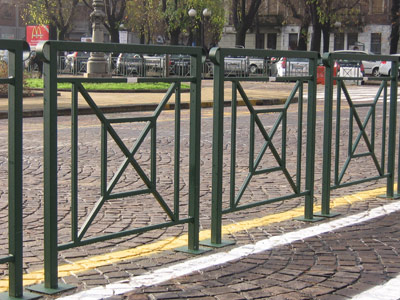 Costituita da montanti verticali in acciaio scatolato 40x40x2 mm., saldati a due correnti orizzontali 20x20x2 mm. ed a diagonali 20x20x2 mm. disposte a Croce di Sant’Andrea, rinforzi interni in acciaio scatolato 20x20x2 mm., con orecchie laterali.
